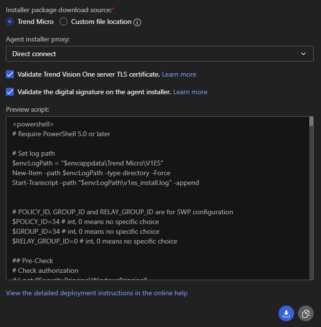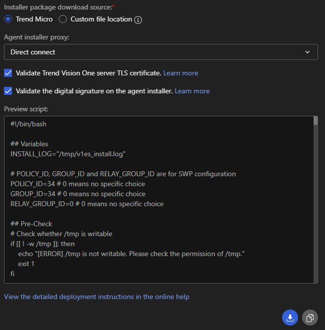 此功能允許您生成自動化 Bash 腳本 (Shell Script),透過 CLI 下載並安裝 Agent,適合自動化部署或大量派送至 Linux 伺服器群。